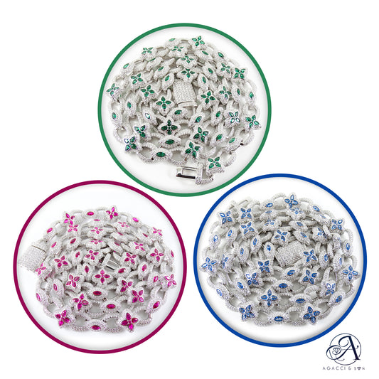 24-Inch .925 Sterling Silver Chain Necklace – Red, Green, or Blue 5A Gemstones