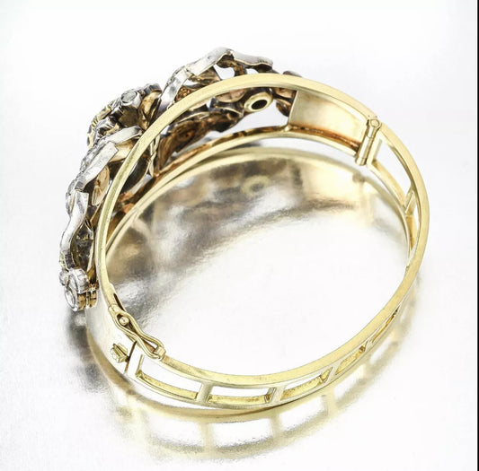 Antique vintage Diamond & Emerald bangle bracelet 18k Gold Silver 5.70 CTs