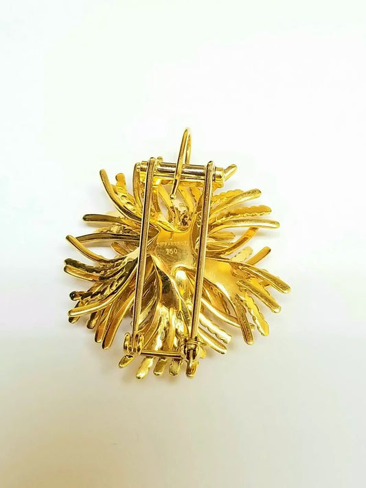 Authentic Tiffany and CO 18k Yellow Gold Sea Urchin Flower Pin Brooch Excellent