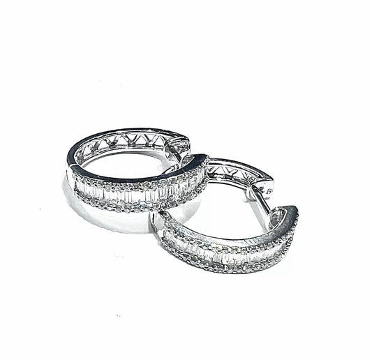 Baguette and Round Brilliant 1.01 cts Diamond H VS2 W/Gold hoop huggies earring