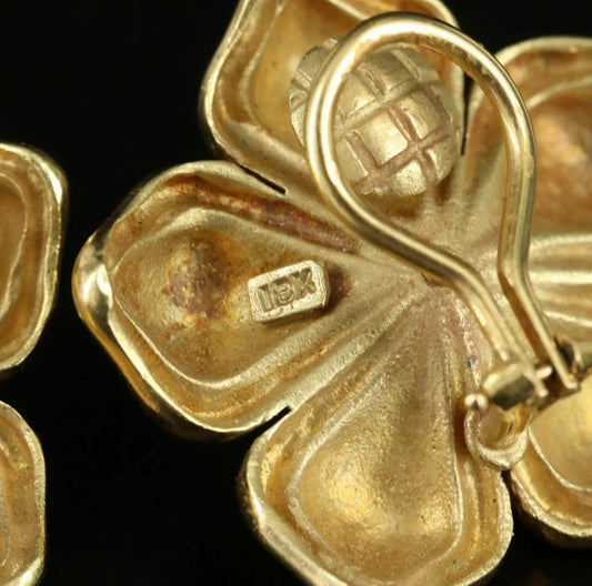 AUTHENTIC VINTAGE TIFFANY & CO 18K YELLOW GOLD MABE PEARL EARRINGS
