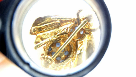 Authenticity GuaranteeTiffany and Co 18k Yellow Gold 0.8ct Sapphire Diamond Bee Pin Brooch Ruby Eye