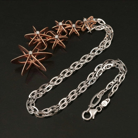 8-Inch Sterling Silver Bracelet with Stones – Rhodium, Gold and Rose Gold Plated, 38.4g