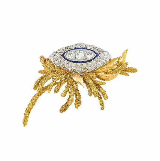 Estate 18k Gold Platinum 2.01 CTs Sapphire Old European Cut Diamond Pin Brooch