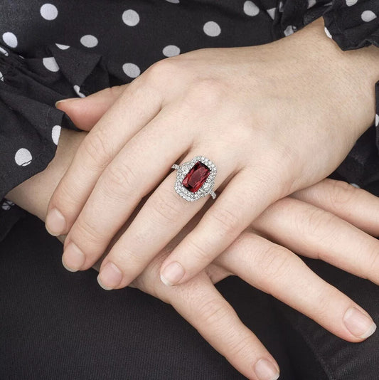 DANWAK 18k White Gold 3.90 Ct Rectangular Cushion Rubellite And Diamond Ring