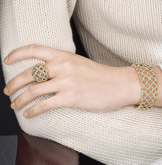 David Yurman Lattice Diamond Cuff Bracelet Bangle 18k Yellow Gold