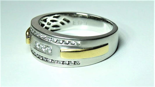 EFFY Fine Two-Tone 14K Gold G-H VS1-VS2 Diamond Matt Finish Men's Wedding Band
