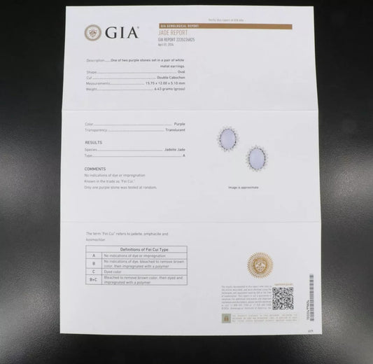 Estate 20.32 CTs GIA Certified 14k WG Purple Cabochon jadeite diamond earrings