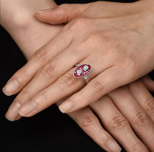 Vintage 18k White Gold 1.20 CT Natural Caliber Cut Ruby And Diamond Ring VS1