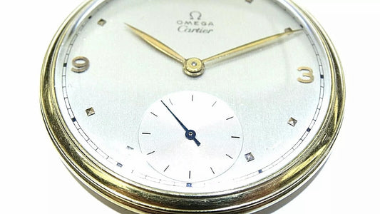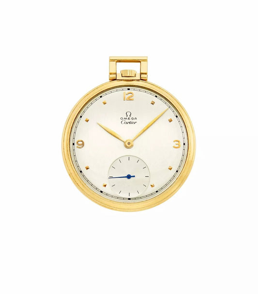Vintage Antique Gold Open Face Pocket Watch, Omega, Retailed by Cartier London