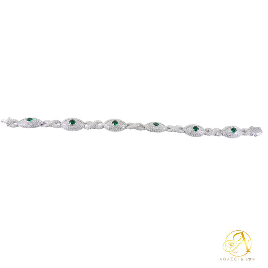 11MM Silver Bracelet Evil Eye Design with Blue, Green & Red Stones