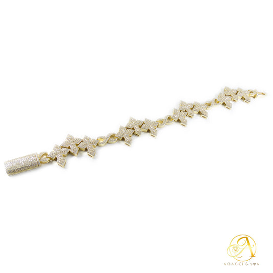 Sterling Silver Horizontal Cross Bracelet with White A5 Stones