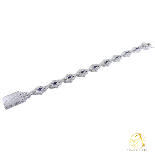 12MM 8-Inch Sterling Silver Flower Chain Design Bracelet with A5 Stones