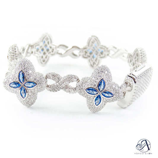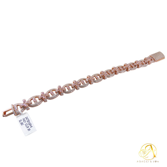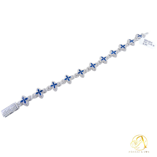 Flower Design Sterling Silver Bracelet 10MM with A5 Stones