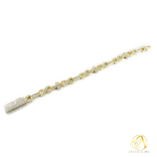 8-Inch Sterling Silver Cross Bracelet with White A5 Stones