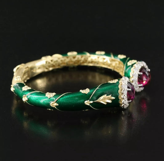 Stambolian Colors Of Life Rhodolite Garnet Diamond Enamel Bangle Bracelet