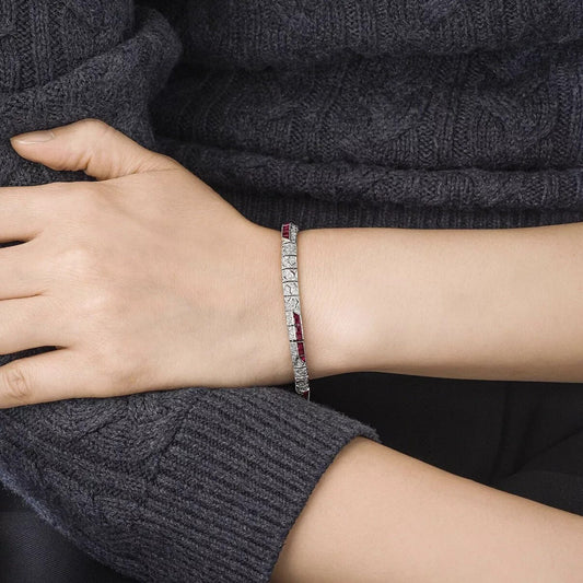 Fine 18K White Gold 3.25 ct TW Ruby and White Diamond Bracelet