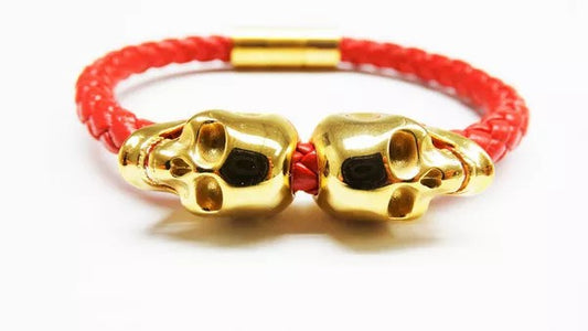 Designer Fashion Italian leather Skull Head Bangle Bracelet 14K Gold Silver SS