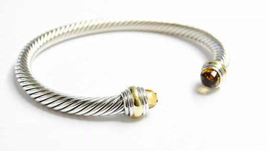 Fine David Yurman Silver/14K Yellow Gold 5mm Citrine Cable Classic Cuff Bracelet