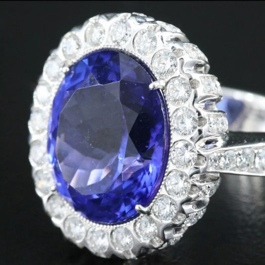 Vintage Natural 14.38 CTs Tanzanite And Diamond 18k White Gold Ring Engagement