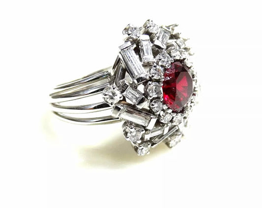 Fine Cocktail Solid 14k White Gold 3.39 CT Natural Diamond and Lab Ruby Ring