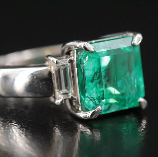 Genuine Platinum Octagonal Columbian Emerald VS Diamond Engagement Ring