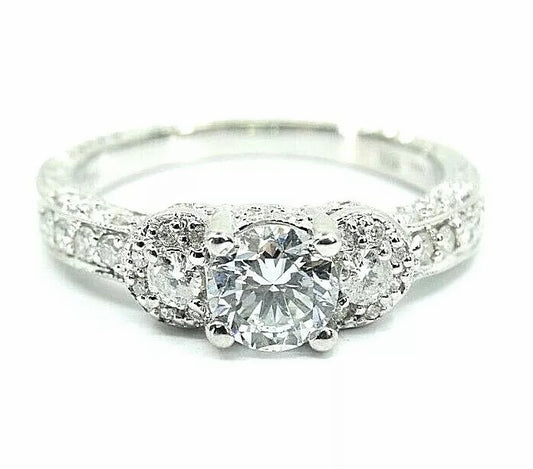 Fine 18k White Gold Fligree Design Diamond Engagment Wedding Ring F VS1-SI1