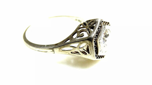 Vintage Antique 1.00 CT Old Minor European Cut Diamond 14k White Gold Ring