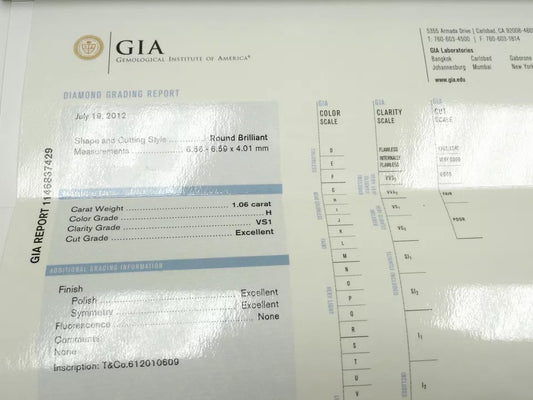 Tiffany & Co PLAT Round Diamond Solitaire Engagement Ring 1.06CT H-VS1