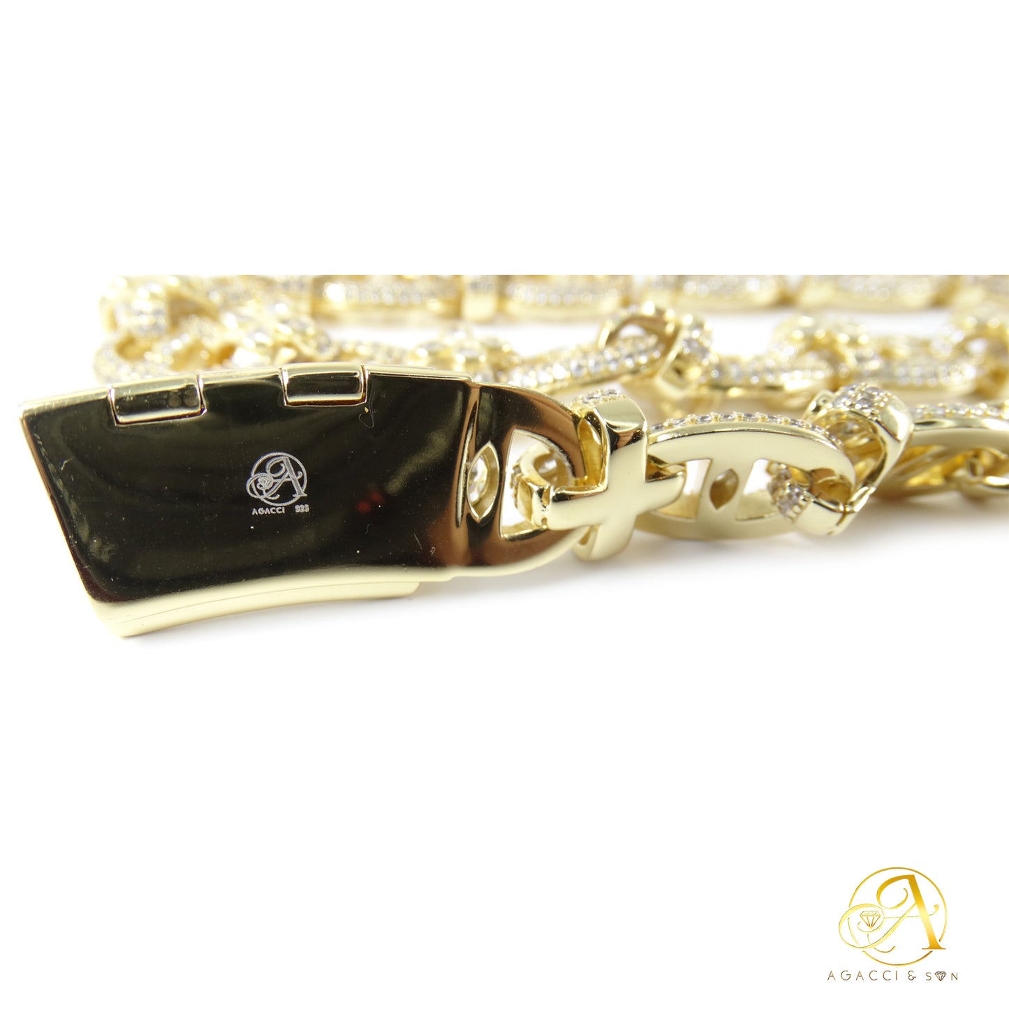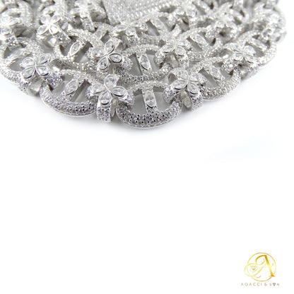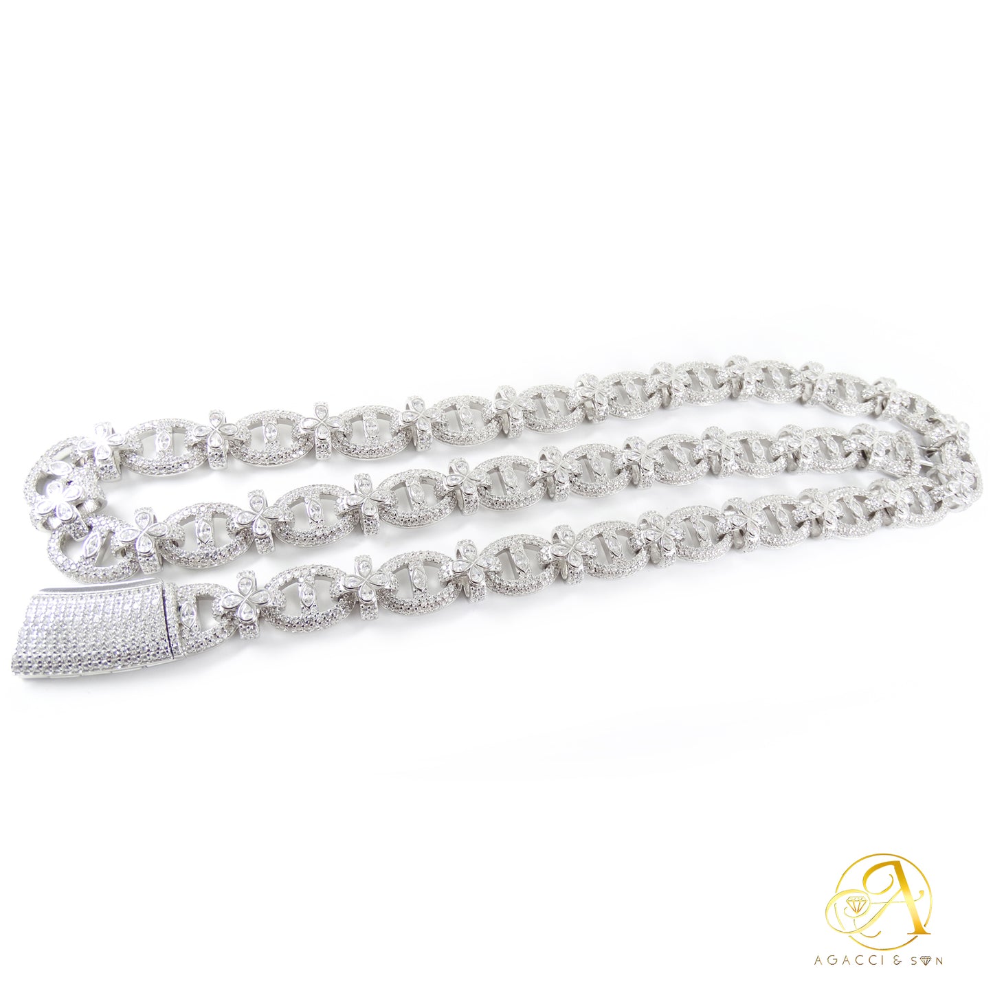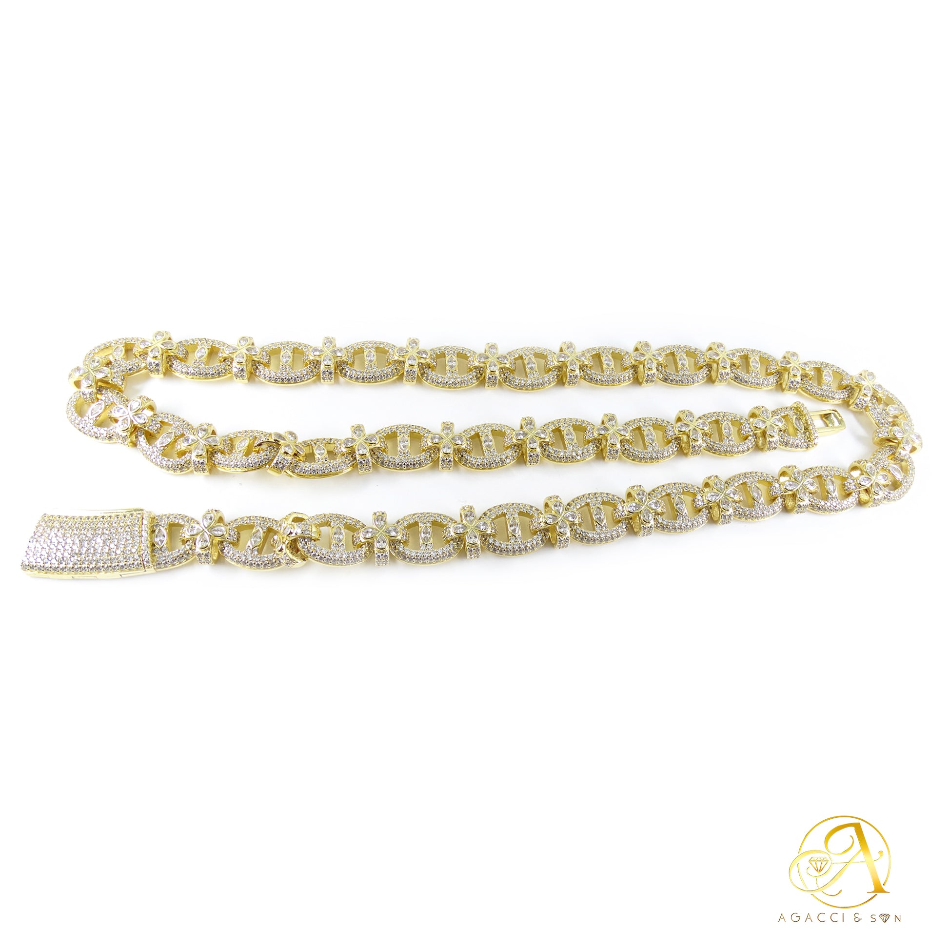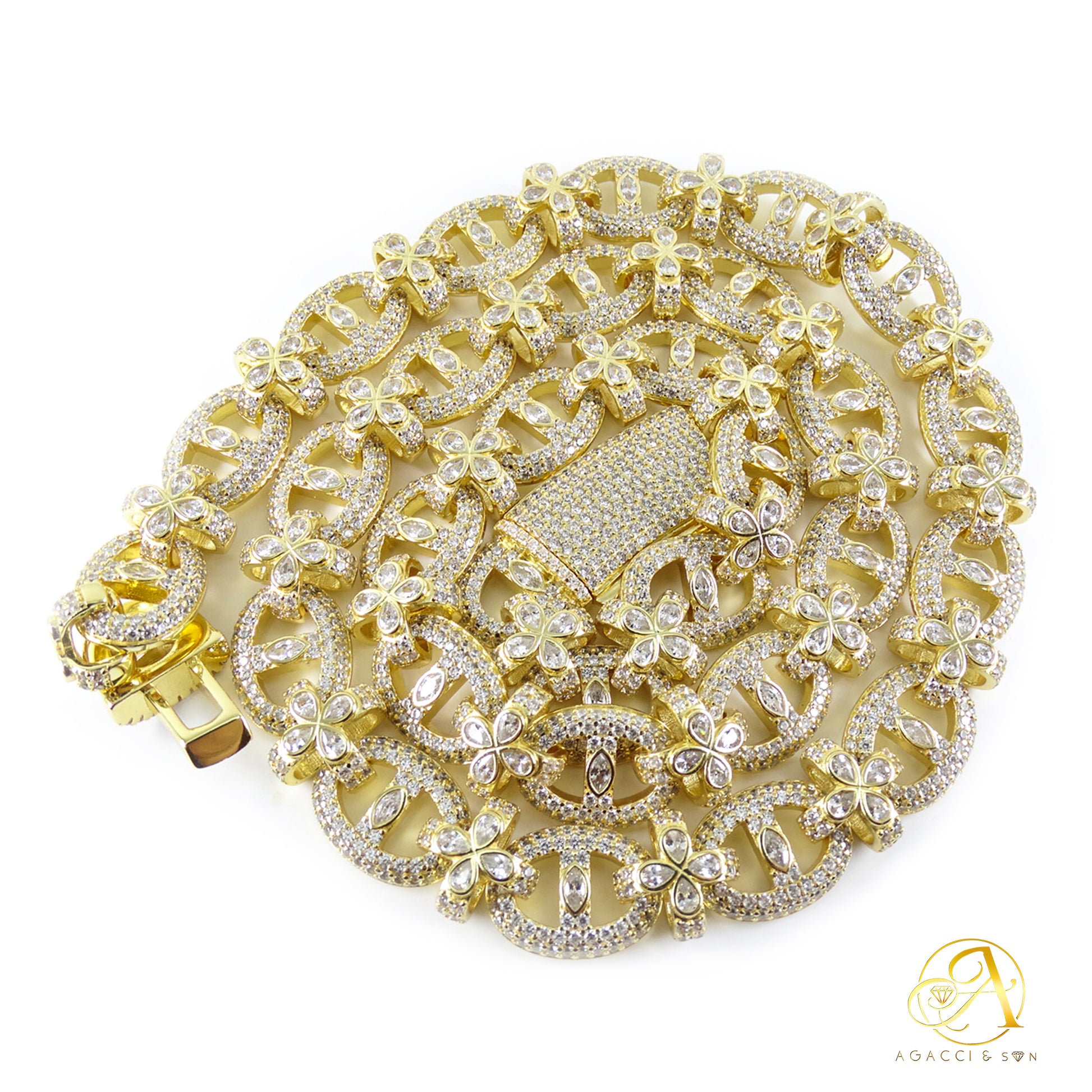 12MM Gold & Silver CZ Necklace – White A5 Stones, Floral-Inspired Design