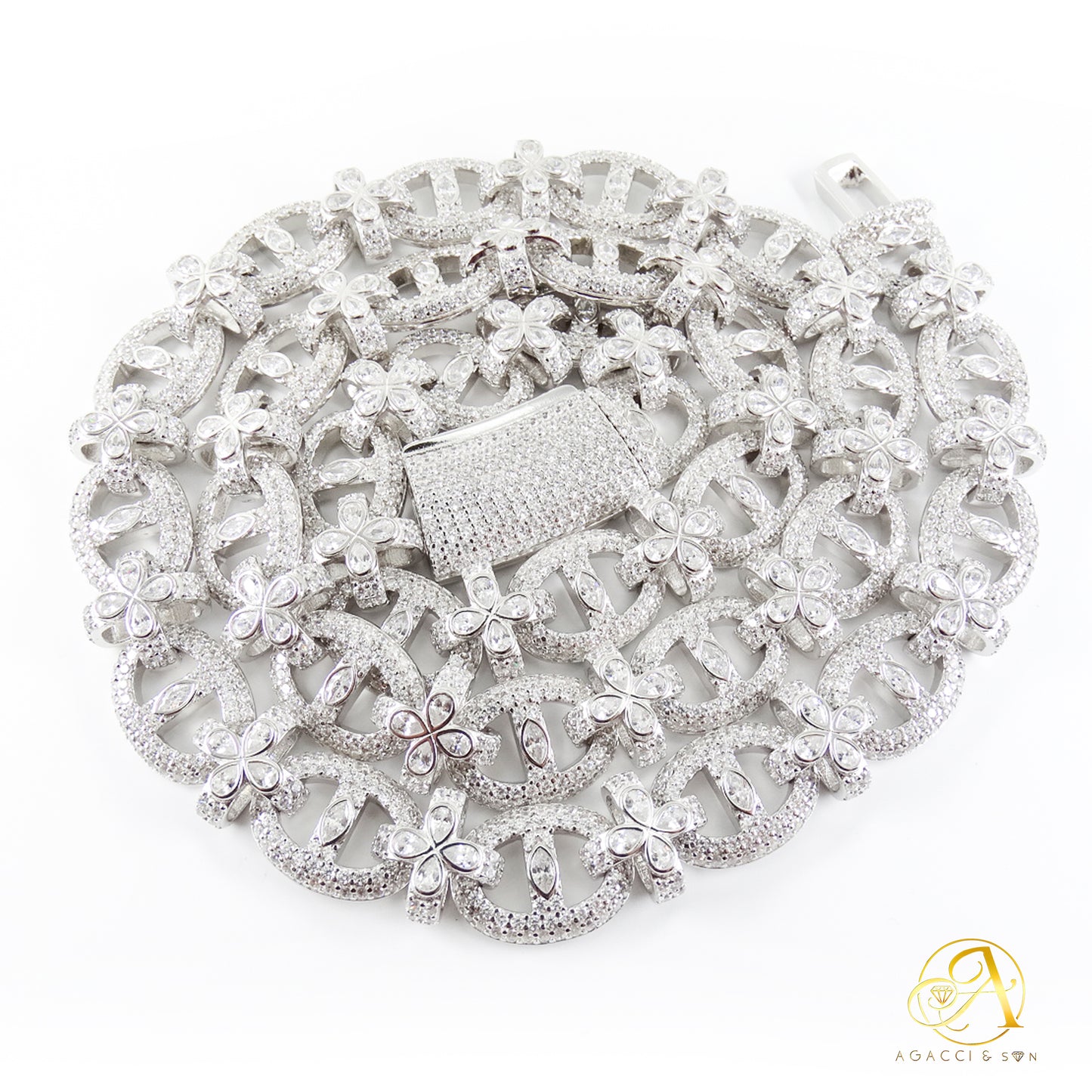 Elevate your jewelry collection with this luxurious 12MM necklace, available in radiant gold and silver, featuring an exquisite floral-inspired design.