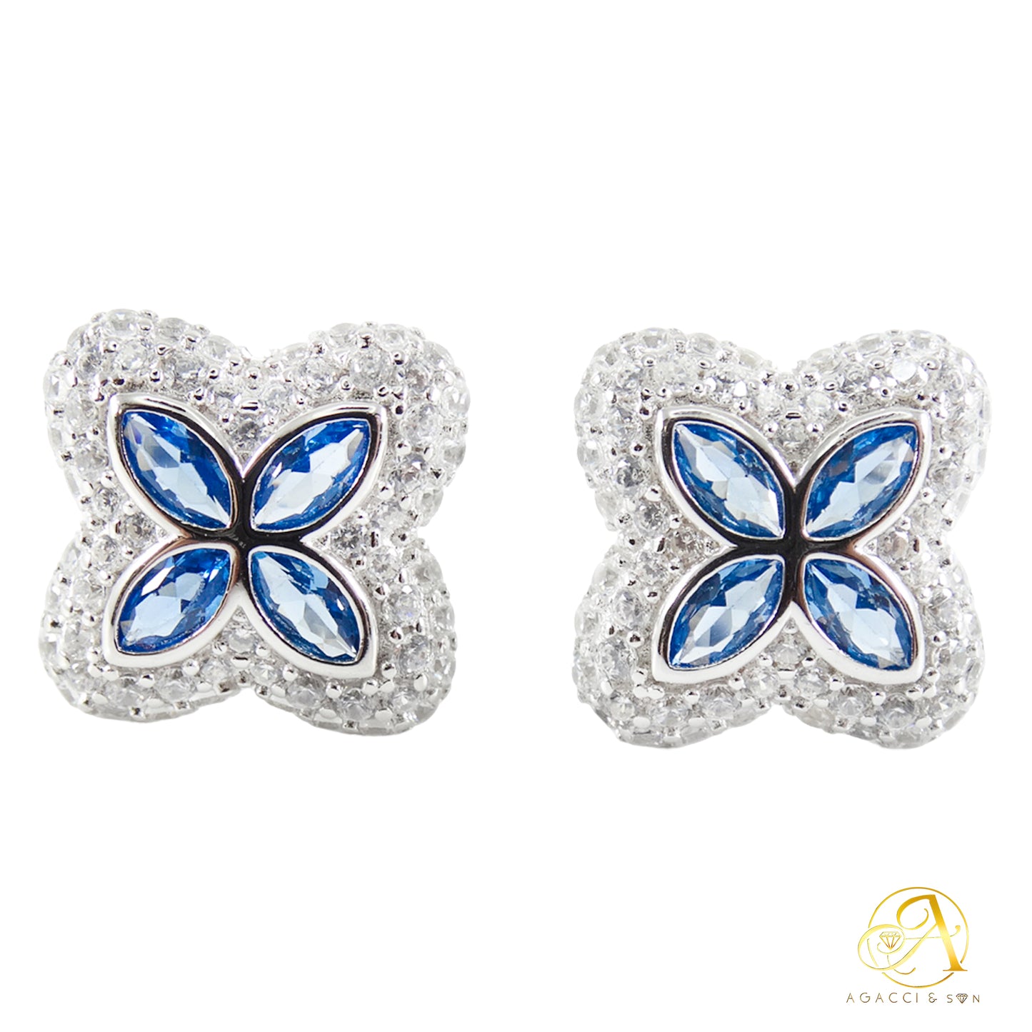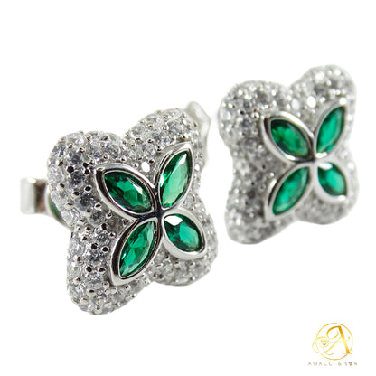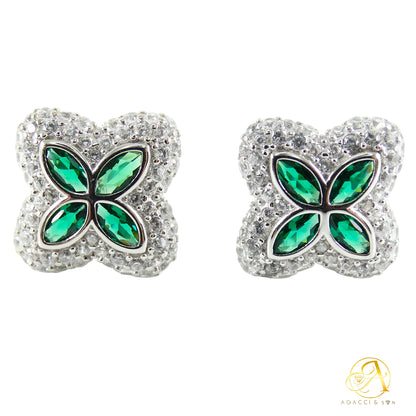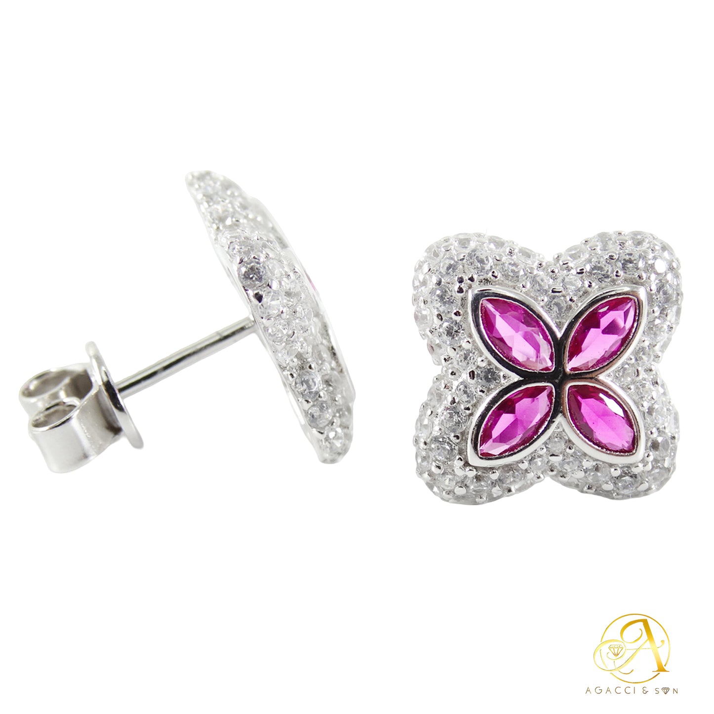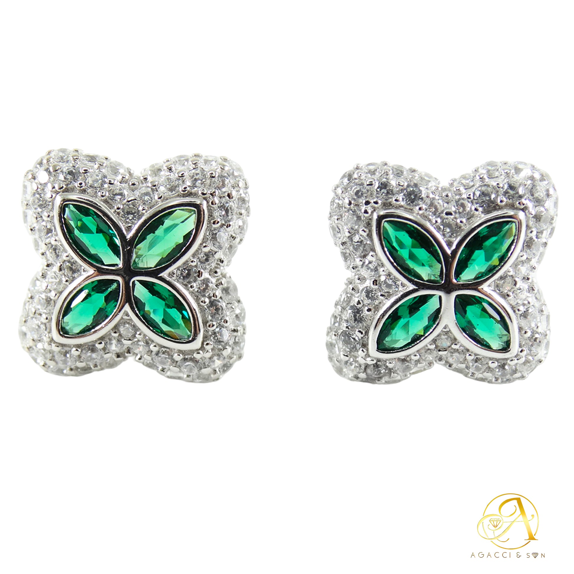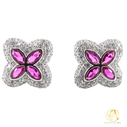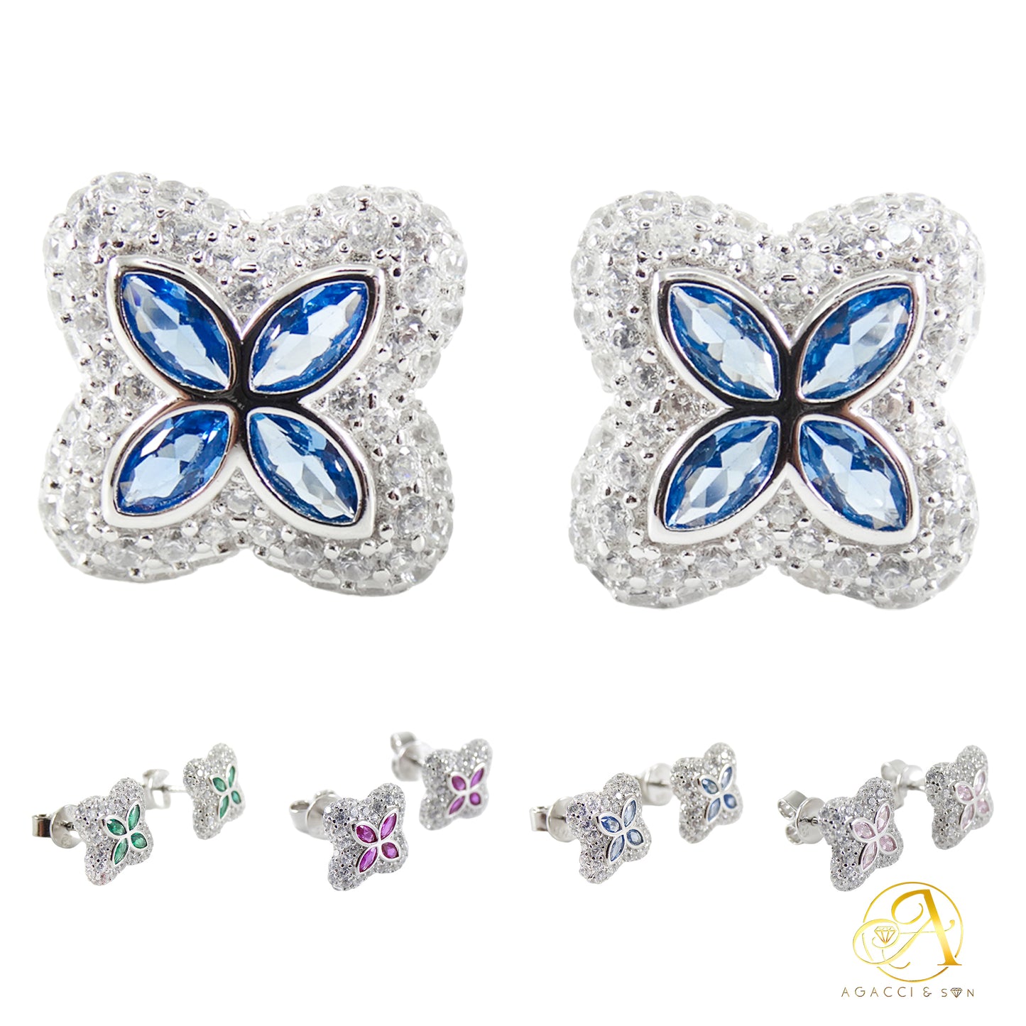 14MM Silver Earrings – Floral Design with Colored Center Eye Stones