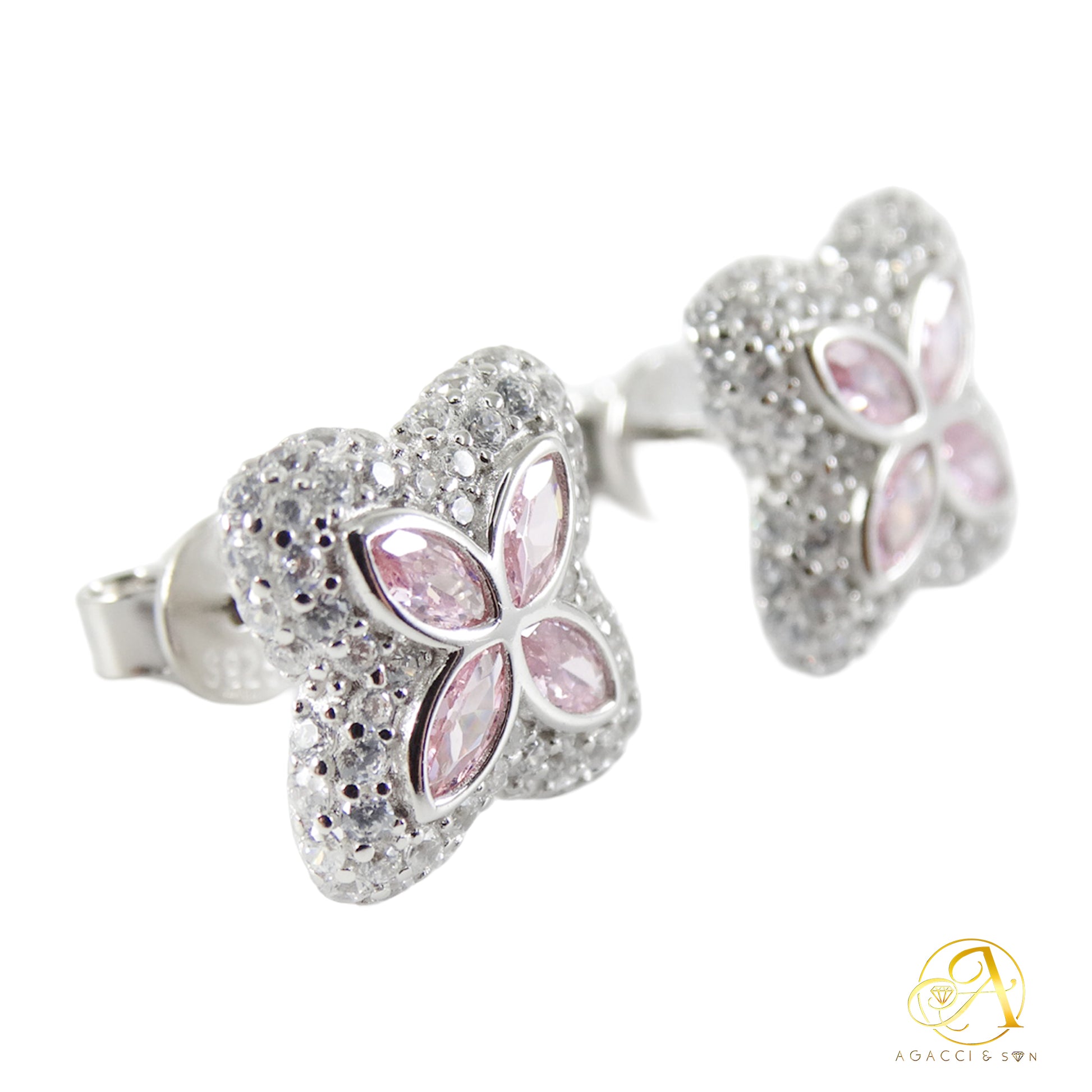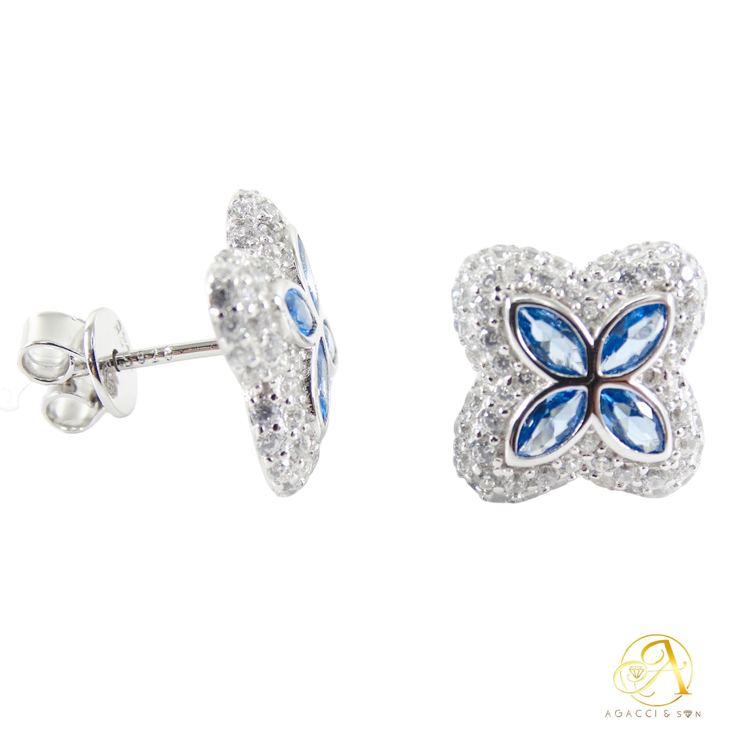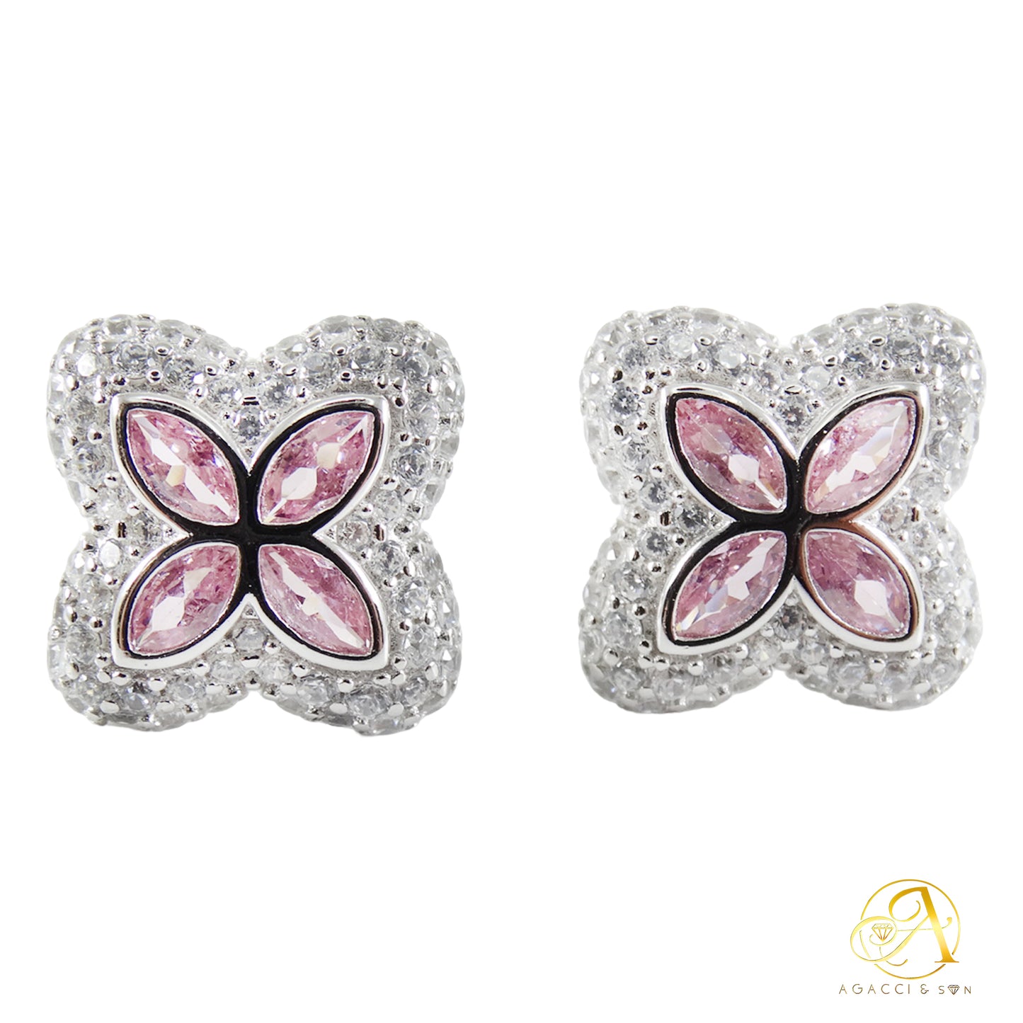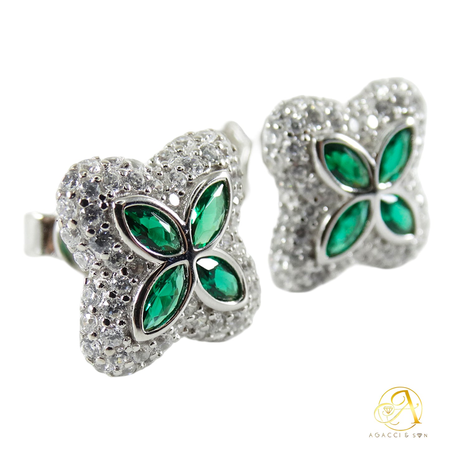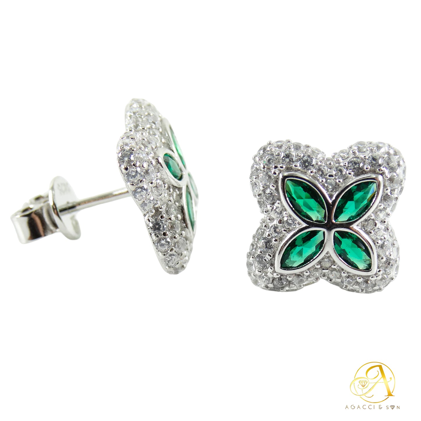 14MM Silver Earrings – Floral Design with Colored Center Eye Stones