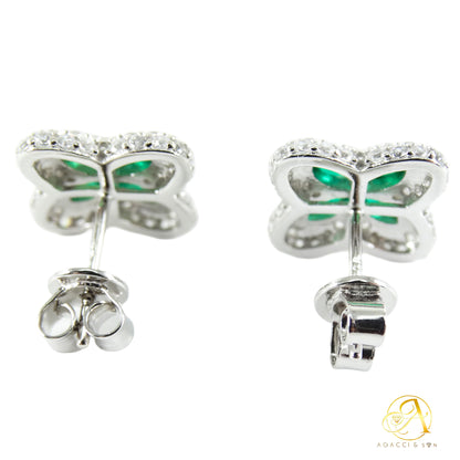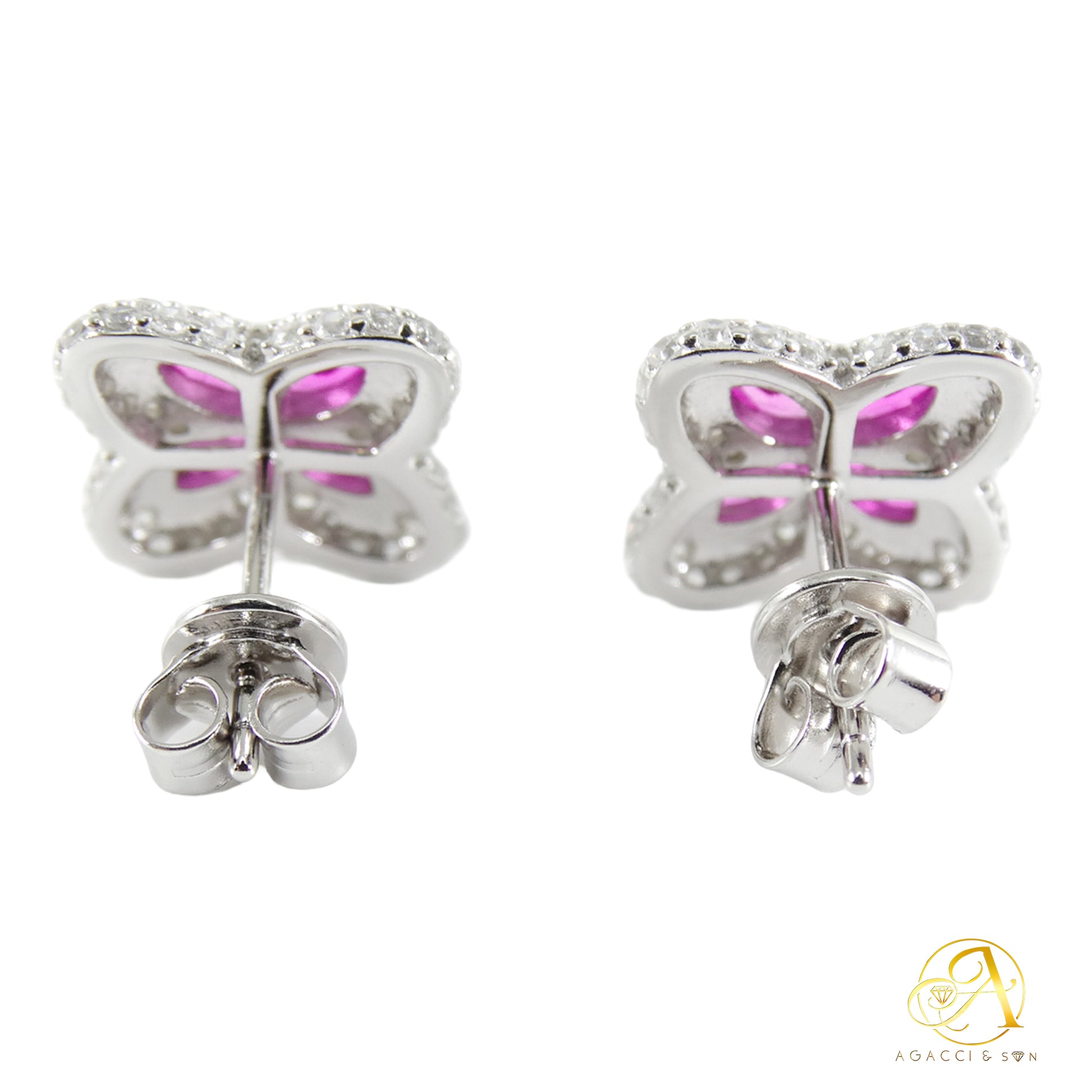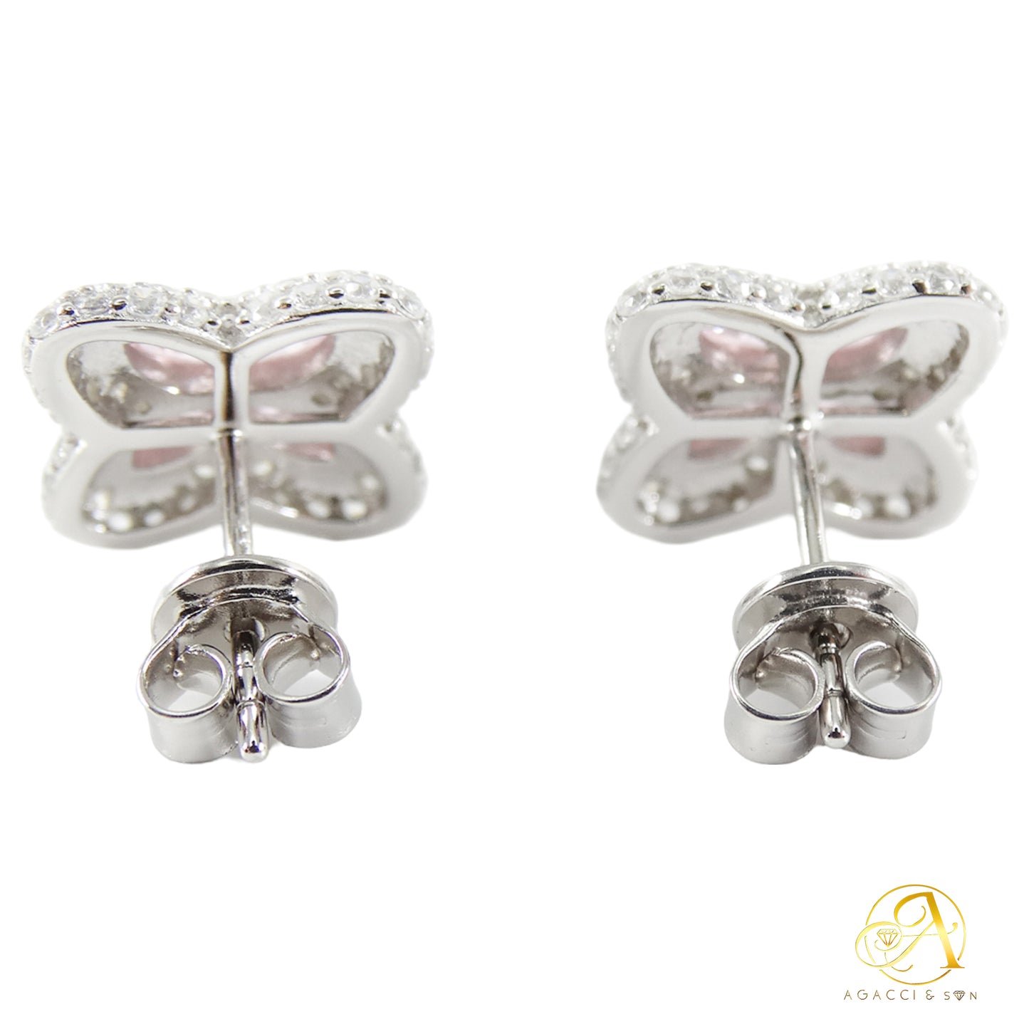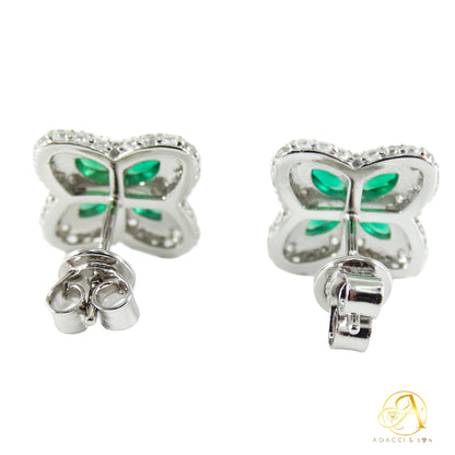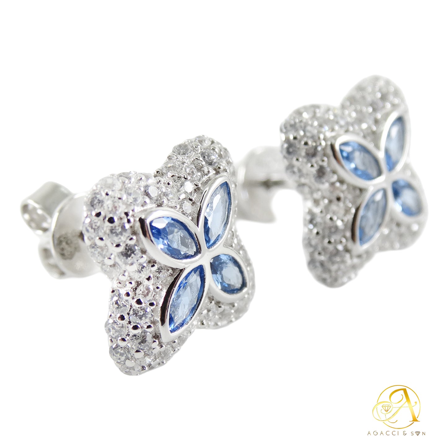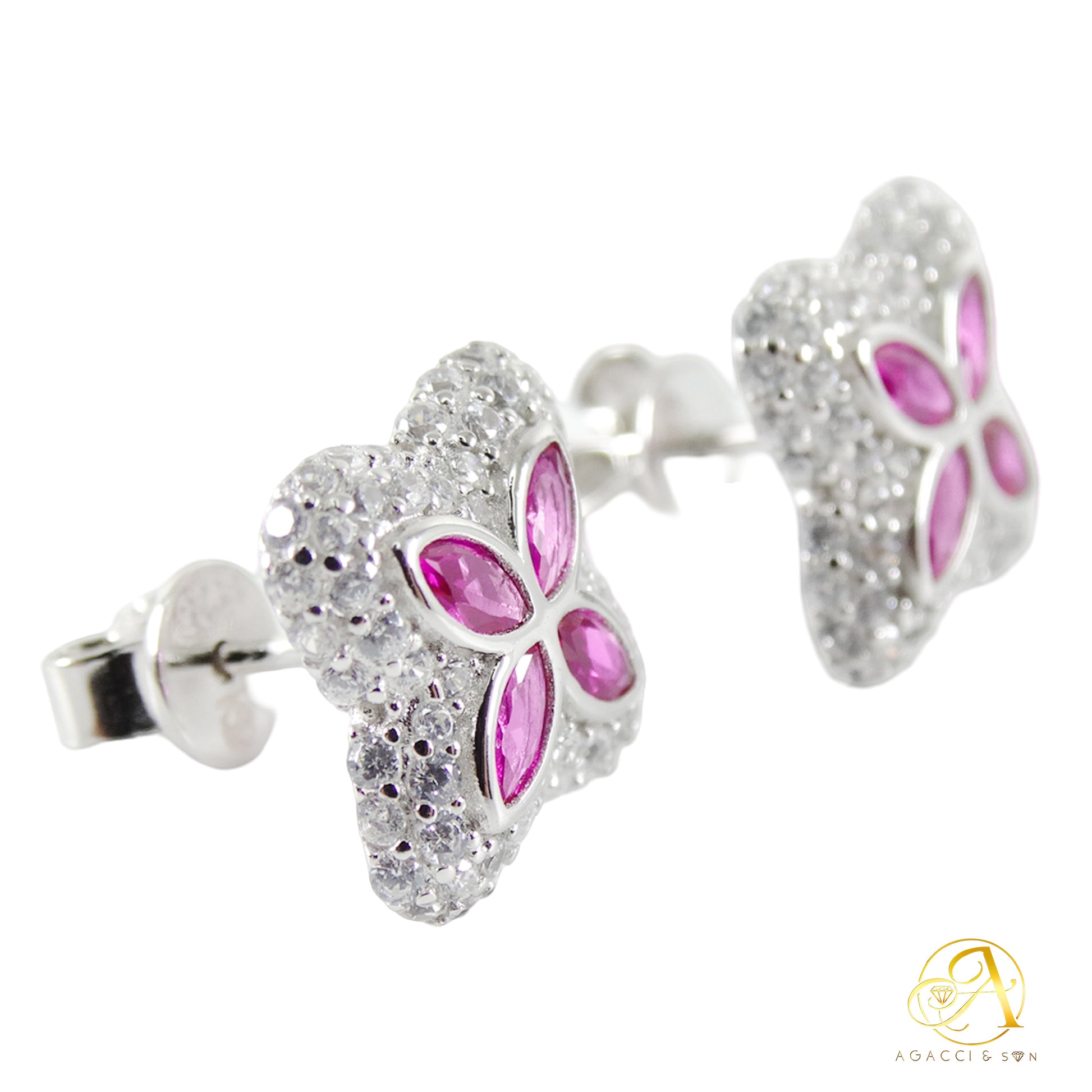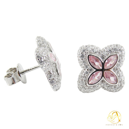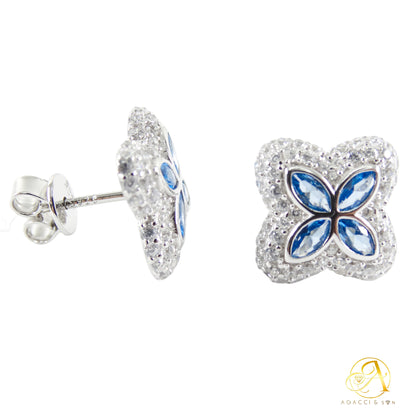 14MM Silver Earrings – Floral Design with Colored Center Eye Stones