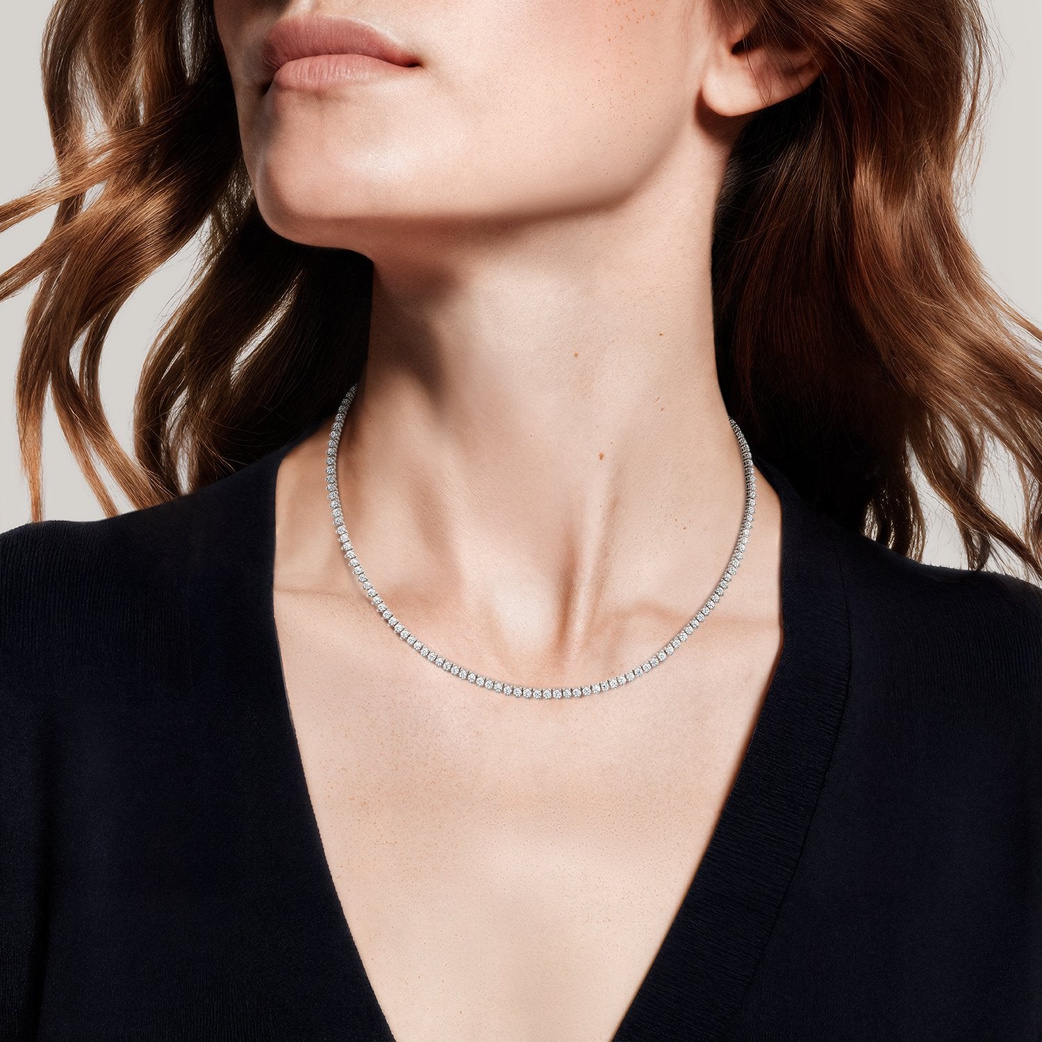 16 in. Perfect Three-Prong Lab Diamond Tennis Necklace (5 ct. tw.) in 18K White Gold