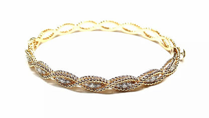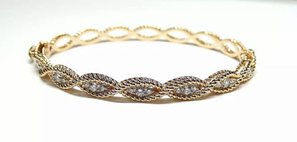 Authentic Roberto Coin 18K rose gold diamond bracelet from the Barocco collection. Cable-twisted bangle bracelet accented in 0.66 ctw diamonds