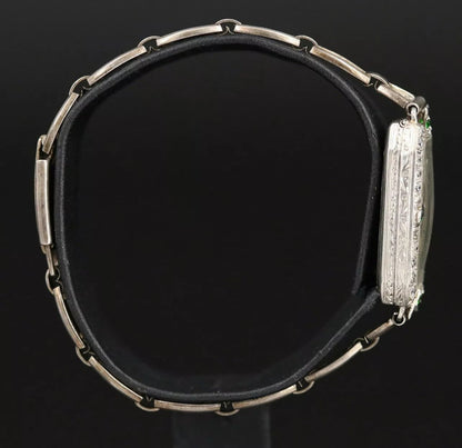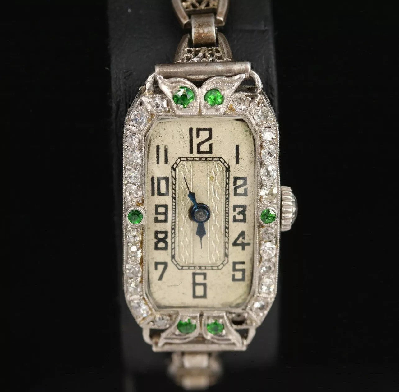 Art Deco Antique Vintage Platinum Diamond And Tsavorite Mechanical Watch
