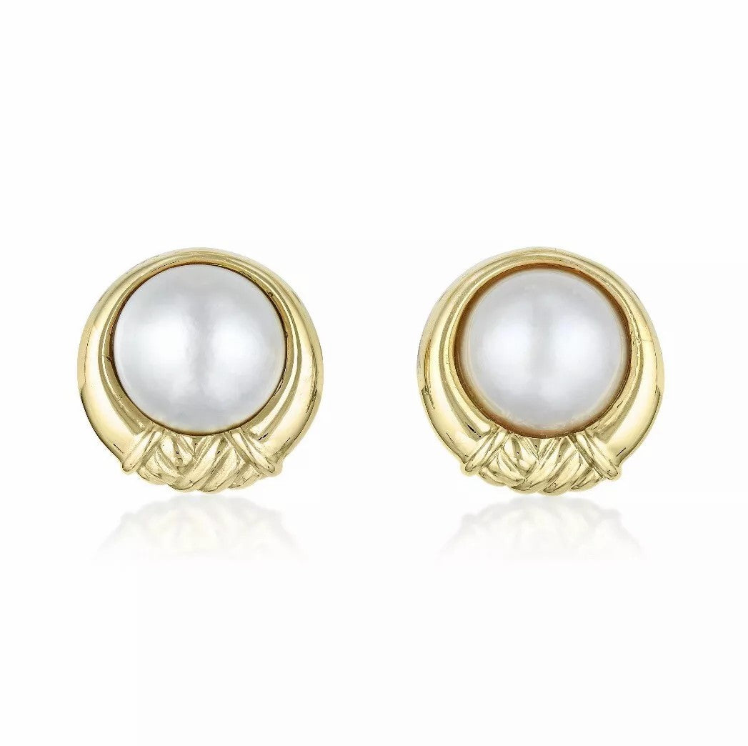 AUTHENTIC VINTAGE TIFFANY & CO 18K YELLOW GOLD MABE PEARL EARRINGS