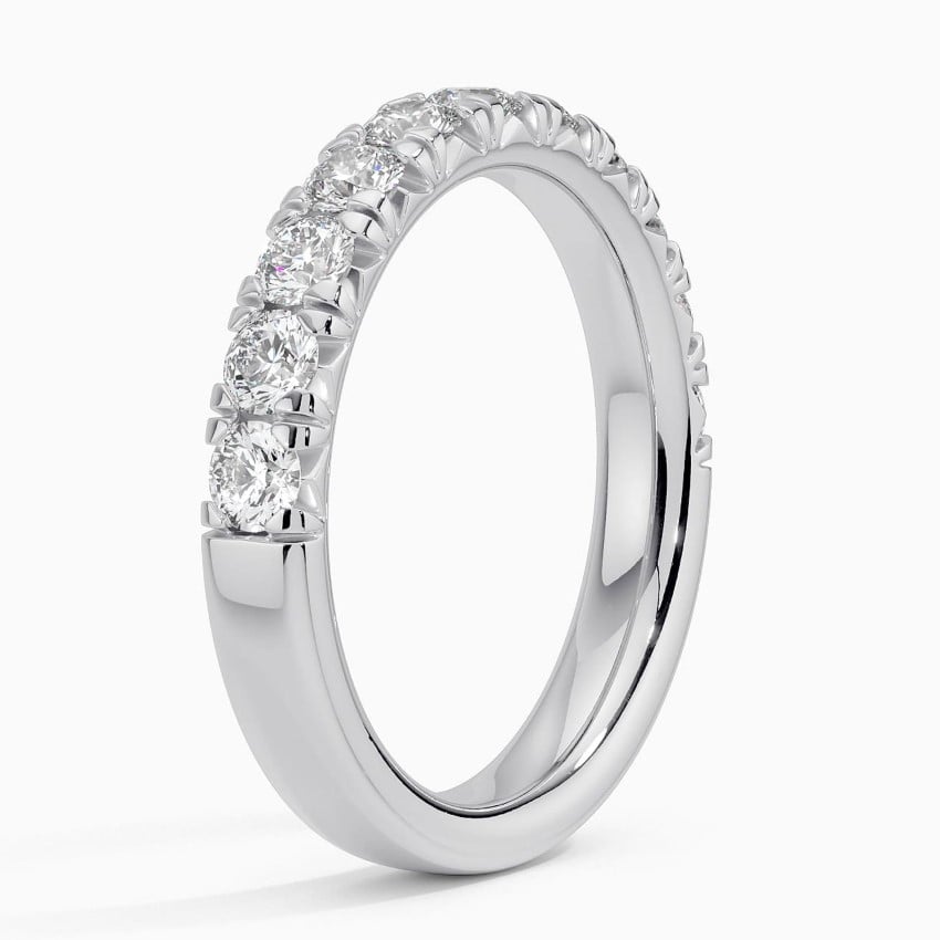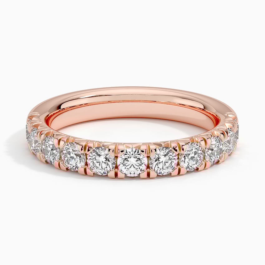 Breathtaking French pavé lab grown diamonds flow halfway down the band and catch the eye in this classic yet stunning ring. Paired with an engagement ring or standing alone, this ring is perfect for everyday wear.