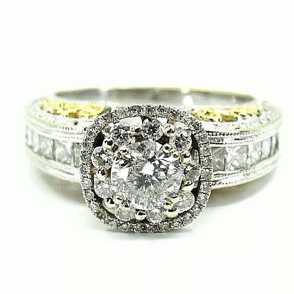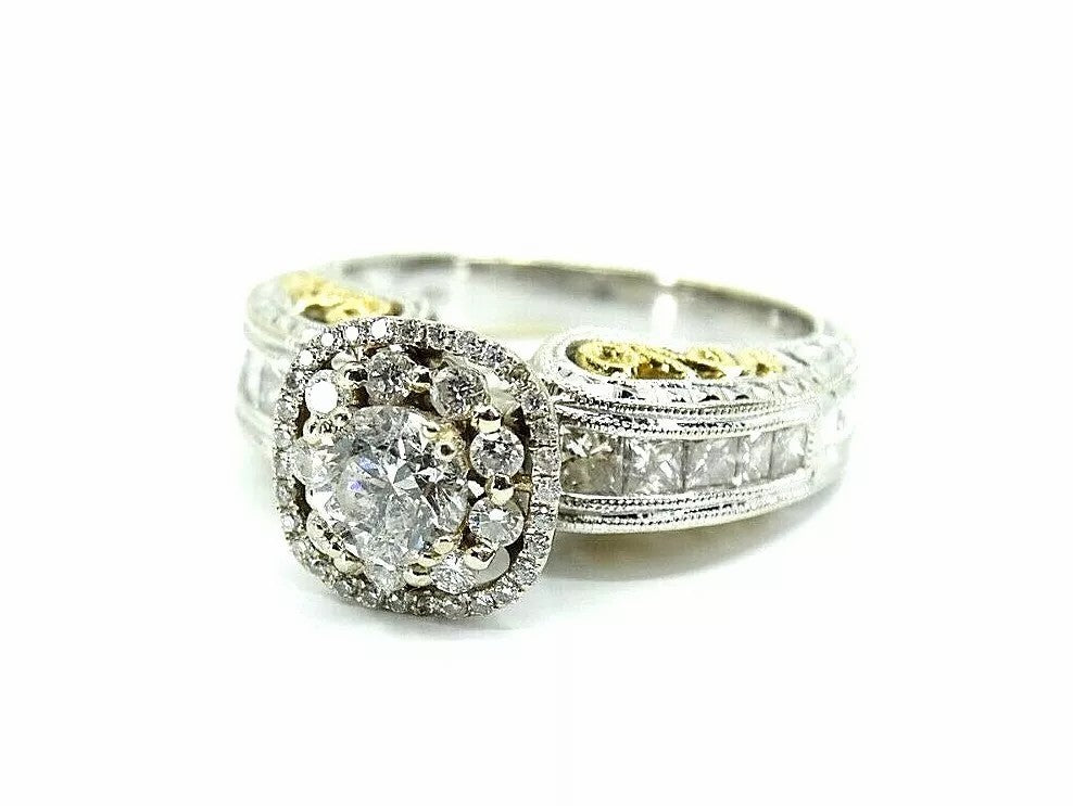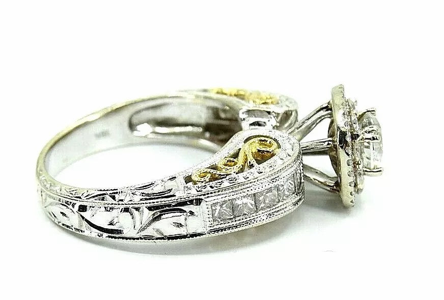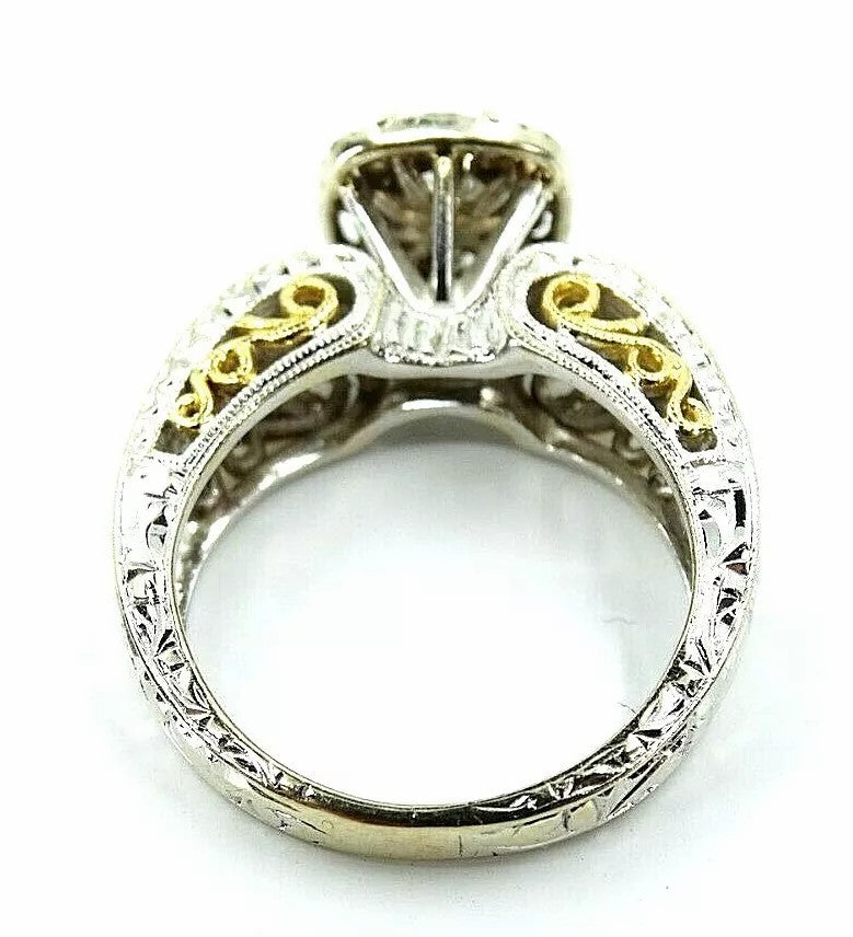 Fine 18k Two Tone Gold Fligree Design Diamond Engagment Wedding Ring F SI1-SI2