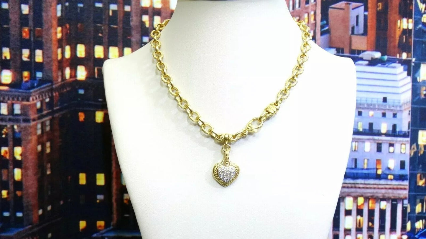 Judith Ripka’s Couture Collections are highly sought after for their unique designs and exceptional craftsmanship. This necklace’s 1.26-carat total diamond weight, heart-shaped pendant, and textured chain make it a truly unique find for collectors and enthusiasts alike.