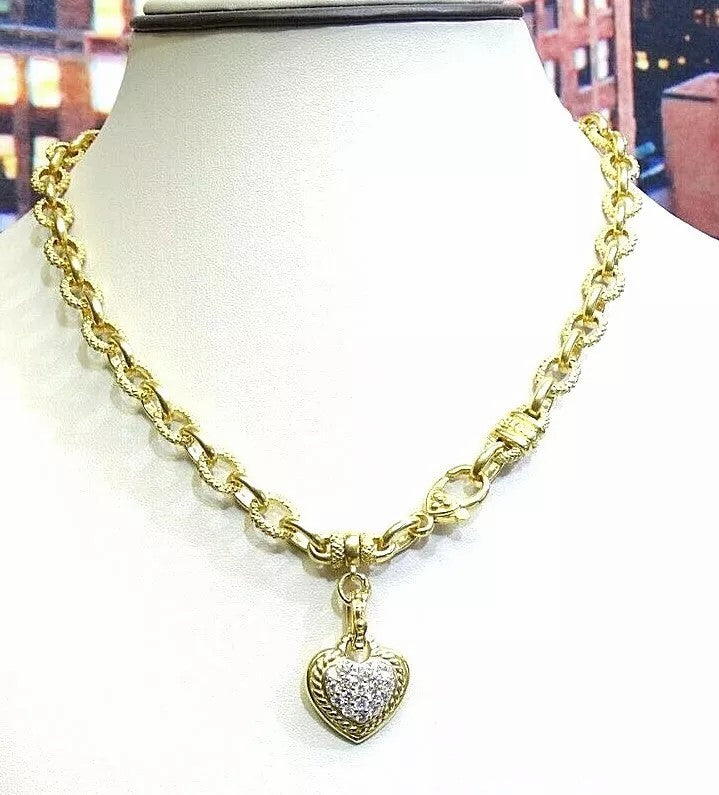 Judith Ripka 18k Yellow Gold Diamond Heart Couture Pendant Necklace 1.26 CT