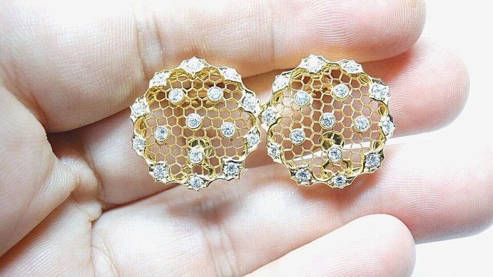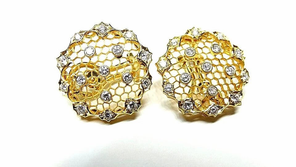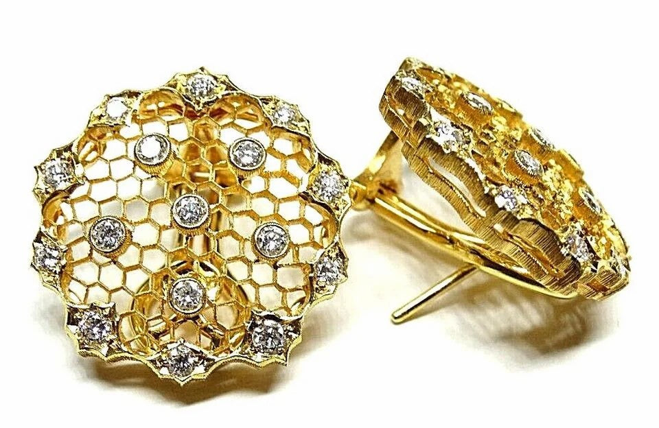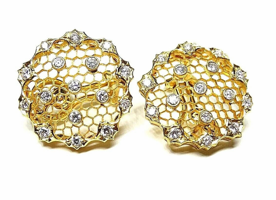 Mario Buccellati Round Tulle Lace Cassiopeia Diamond 18k Yellow Gold Earrings