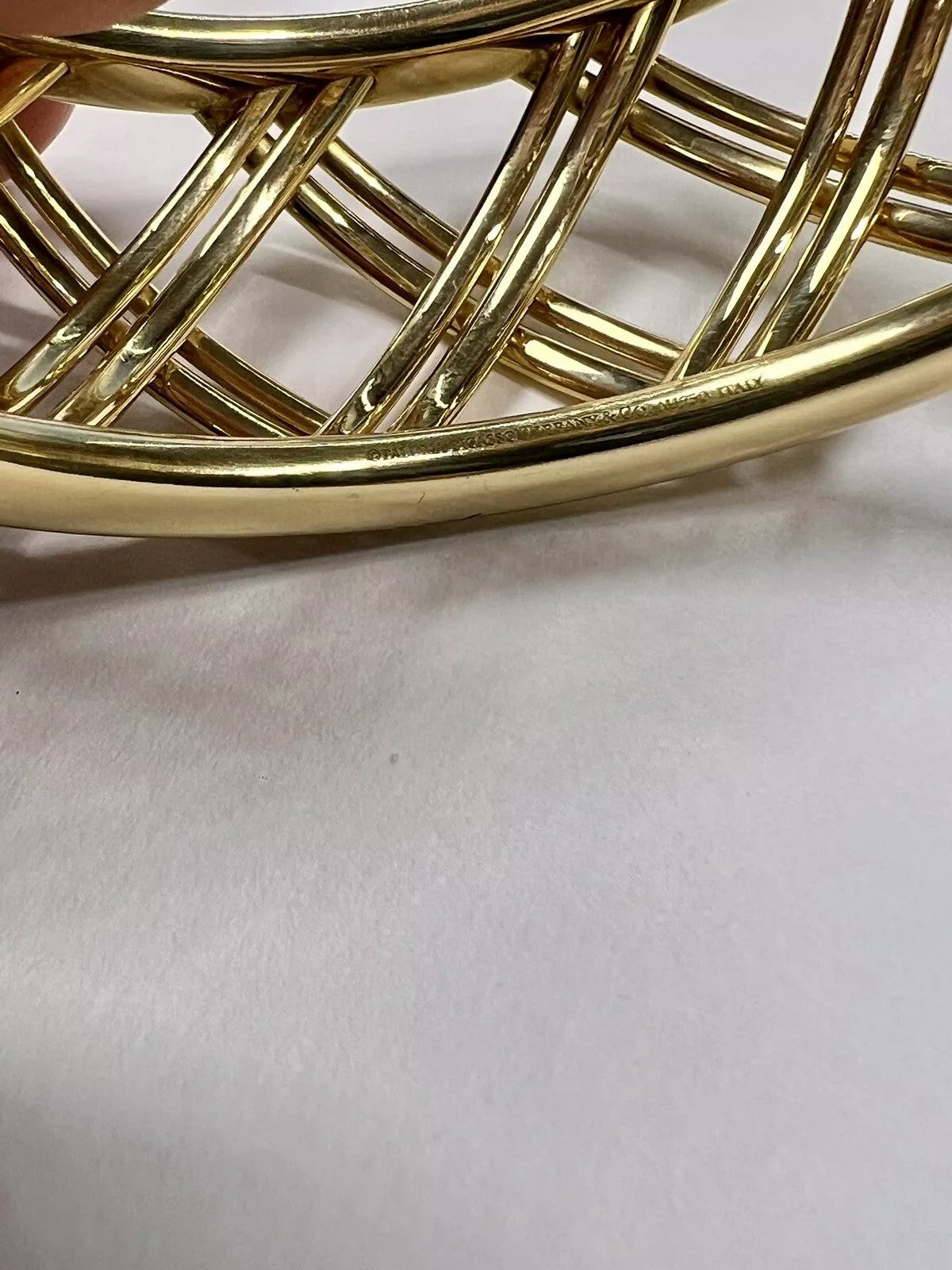 This Tiffany & Co. Paloma Picasso Villa Paloma Trellis Bangle Bracelet is more than just a piece of jewelry—it’s a work of art. Its bold trellis design, 18K yellow gold construction, and iconic branding make it a unique and irreplaceable treasure. Whether as a gift for a loved one or a cherished addition to your collection, this bracelet promises to captivate and inspire.